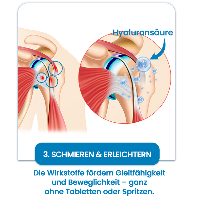 🦴 Hyaluron-Power-Stellt die Gelenkschmiere von innen heraus wieder her.