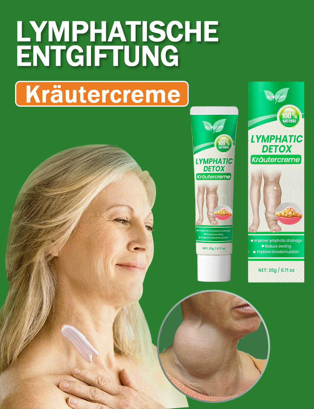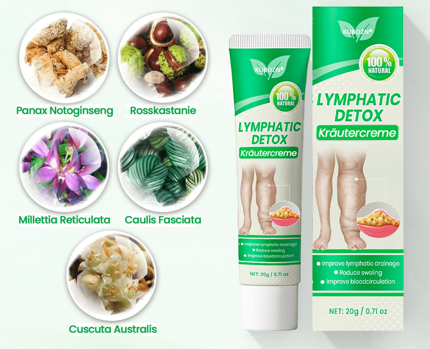 KUBOZN® Lymphatische Entgiftungs-Kräutercreme wurde speziell entwickelt, um den Lymphfluss zu fördern und den natürlichen Entgiftungsprozess des Körpers zu unterstützen. Sie hilft dabei, Flüssigkeitsansammlungen zu reduzieren, Schwellungen zu lindern und die Durchblutung langfristig zu verbessern.